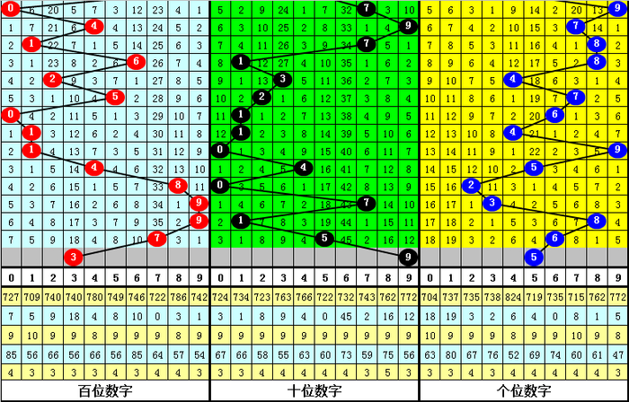 其中,号码奇偶比为29:28,奇偶号码开出比例相当;号码大小比为23:34,大号表现疲软;号码012路比为26:19:12,0路号码表现较热。