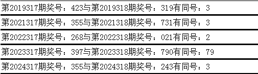 与前期历史同期奖号对比分析,在最近五年开奖中,第317期同期奖号与第318期同期奖号都出现了相同号码: